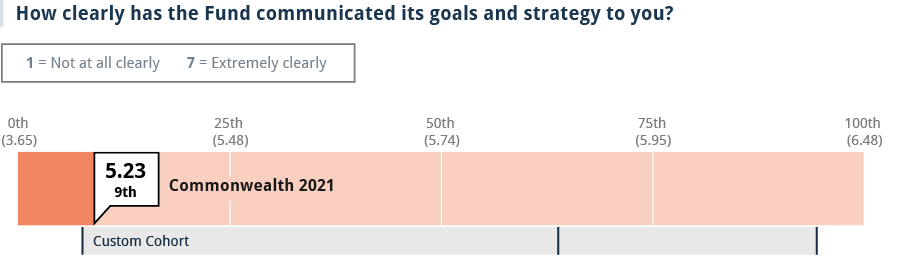 Responsiveness and clearer communication around goals and strategy. Grantees rated the Fund lower than peer foundations on measures related to responsiveness and providing clear and consistent communication about goals and program strategies.