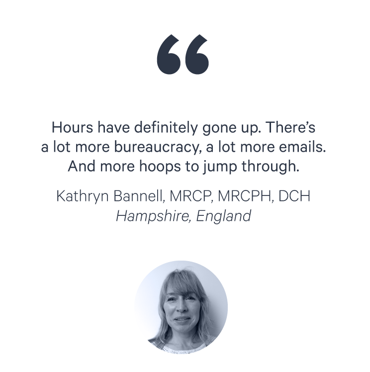 “The overload comes from the volume of paperwork,” says Emily Symington, BM, BSc, DRCOG, DFSRH, MRCGP, a new GP working just south of London. “The volume of documents that need[s] to be reviewed—the referral writing, referral receiving, processing, discharge summaries, and the clinical letters.” In both the U.S. and the U.K., frustration surrounding administrative work is compounded by a sense that all the data collection may not be truly in service to improving care.