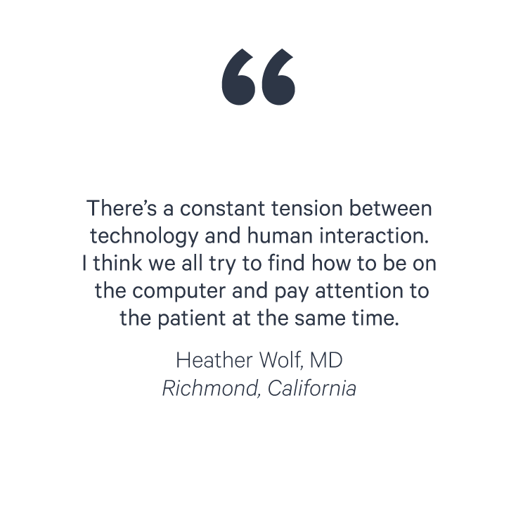 “Our EMR is very clunky and I feel like it was built around billing rather than clinical care,” says Jessica Wong, MD, of San Francisco, California. “There are a ton of extra clicks. I think people who were close to retirement at the time [we adopted EMRs] saw that they would have to assume this new burden of learning EMRs and that kind of ushered some of them out.”