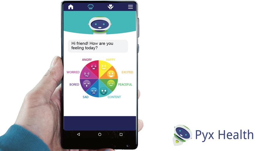 The face of Pyx Health is Pyxir, a friendly chatbot — a type of artificial intelligence that simulates human conversation. Pyxir prompts people each day to indicate how they’re feeling using an “emoji wheel” and, every two weeks, walks them through surveys that detect depression, anxiety, or loneliness. Based on this information, Pyxir offers tailored support: gentle nudges, words of encouragement, or even jokes or silly gifs. According to the company, most users (88%) say they turn to Pyxir first before asking another person for help.