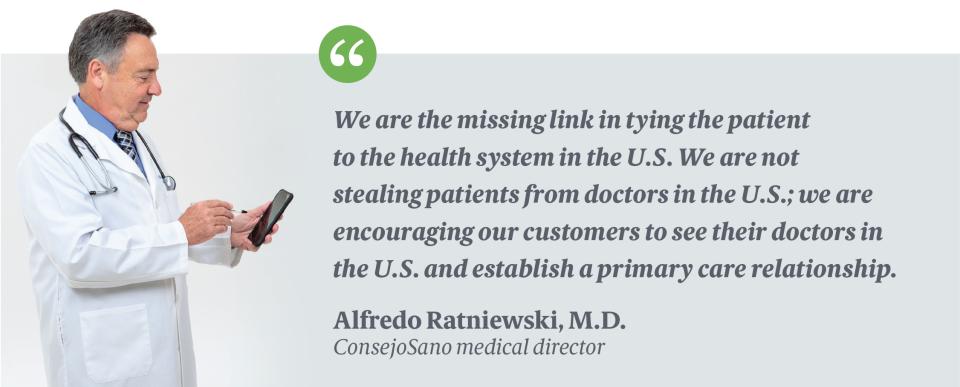 Elements of the MedicallHome model have been adapted to the U.S. through ConsejoSano (Healthy Advice), a joint venture launched in 2014 by Salud Interactiva and an independent, U.S.-based team. ConsejoSano founder and CEO Abner Mason saw an opportunity to leverage elements of the MedicallHome model to meet the needs of the millions of Spanish speakers living in the United States. After soliciting guidance from multiple law firms regarding telemedicine regulations, ConsejoSano created a model its leaders believe satisfies U.S. regulatory requirements, particularly around licensure.