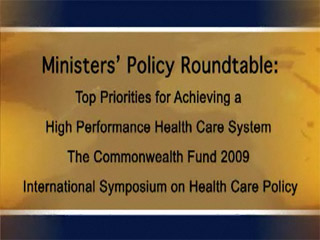 Watch the highlights of the ministers' roundtable from The Commonwealth Fund's 2009 International Symposium on Health Care Policy, "Top Priorities for Achieving a High Performance Health Care System." Participants included Carolyn Clancy, M.D., director of the Agency for Healthcare Research and Quality; Andy Burnham MP, Secretary of State for Health, England; Thomas Björn Zeltner, M.D., former Secretary of State for Health, Switzerland; Abraham (Ab) Klink, Minister of Health, Welfare and Sport, The Netherlands; Dr. Jonathan Coleman, Associate Minister of Health, New Zealand; Karin Johansson, State Secretary for Health, Sweden; Lord Ara Darzi, KBE, M.D., Former Parliamentary Under Secretary of State, England.